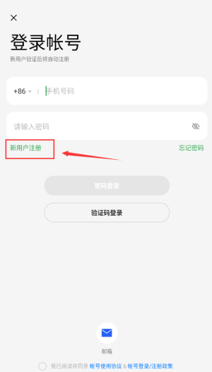 1、点击红色边框新用户注册按钮,开始账号注册流程。