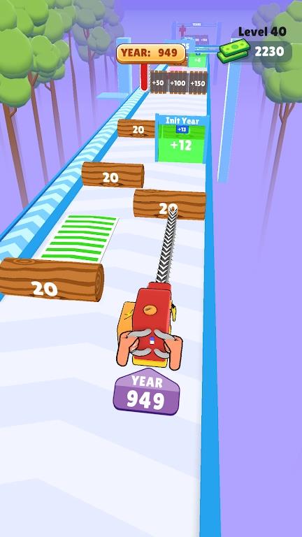 2、创新的跑酷与伐木玩法完美结合,玩家需要在奔跑过程中精准砍伐树木,既要躲避障碍又要收集资源,考验反应速度与操作技巧的双重能力。
