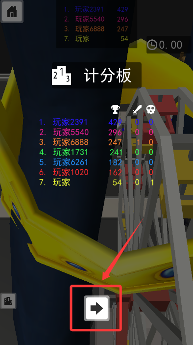 4、每轮结束后查阅战绩面板,点击继续按钮进入下一场对决。