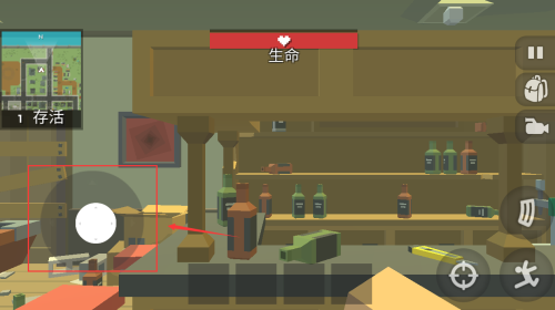 4、移动白色摇杆,瞄准棕色酒瓶射击。