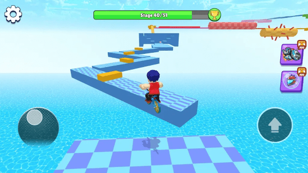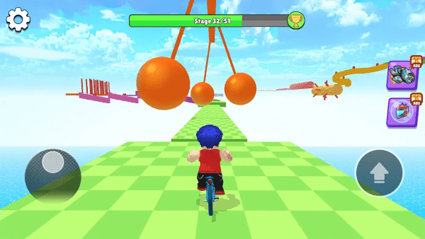 2、收集关卡内金币与道具,用于解锁新皮肤或提升属性,如临时加速、无敌护盾等,助力突破高难度路段。