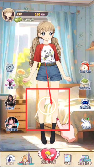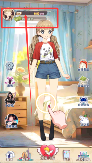 1、玩家通过点击屏幕与角色互动,完成任务获取经验值提升等级,解锁更多服装和场景。