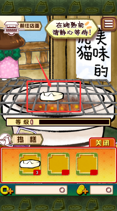 4、烤好后,出现猫咪询问是否捣糕,点击对应猫咪完成互动。