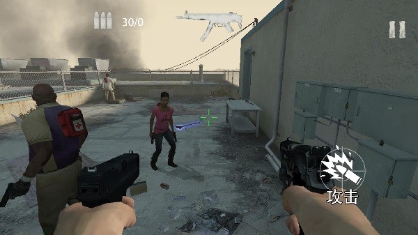 4、左手划屏幕躲开吐酸液的胖子僵尸,右手点射爆头。