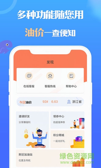 1、【新增功能】新增一键充电和特惠商城,加油4.5折;