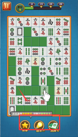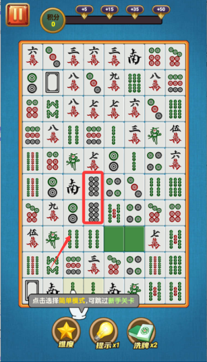 2、在连连看环节中仔细观察元素位置,找到相同图案且能连成直线的两个方块,点击消除并不断积累分数与道具。