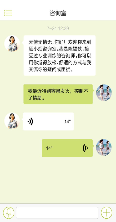 顾小烦咨询师app是一款心理咨询类手机软件,这里汇集了资深的心理咨询师,支持即时文本消息和语音多种资讯方式,让咨询师帮你解决生活中和工作中所遇到的难题,打开心扉,快乐生活,喜爱的朋友赶快下载体验吧!