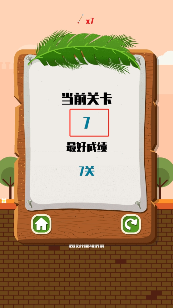 3、关卡结算界面会显示当前的成绩,点击房屋回主页或循环箭头重玩,复盘射箭角度、力度技巧,为后续关卡积累经验。