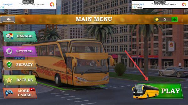 1、主界面点击【PLAY】,进入场景,操控角色靠近黄色大巴,准备进行巴士驾驶任务。