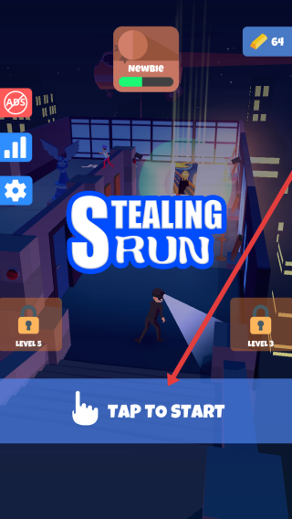 1、在启动页,点击TAP-TO-START,开启新关卡LEVEL3/5,挑战更难偷窃场景,解锁新技能与道具。