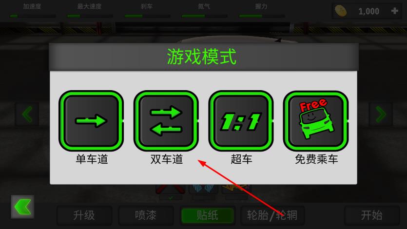 1、在场景选择界面,点击“沙漠”“绿洲”“冬天”等场景,消耗对应金币进入赛道。