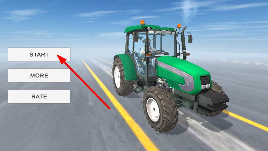 1、进入游戏,先在初始农田查看土地状况,选择适合的拖拉机和犁具,启动机器开始第一片土地的翻耕工作。