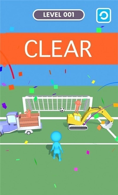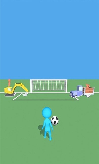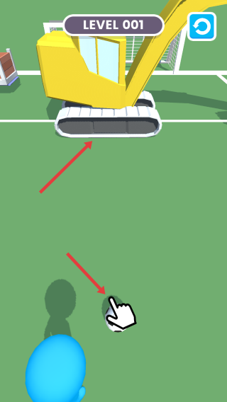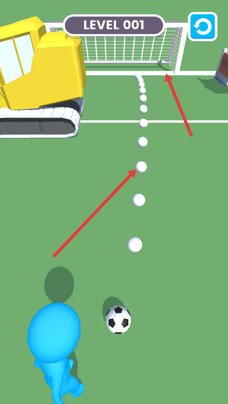 1、在LEVEL 001关卡,操控蓝色小人瞄准足球,规划路线避开黄色挖掘机障碍。