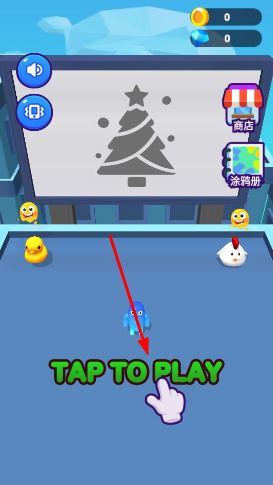 1、进入主界面,点击“TAP TO PLAY”选择关卡,操控蓝色果冻人进入场地,快速熟悉移动、抓取等基础操作,开启欢乐竞技,掌握对战流程。