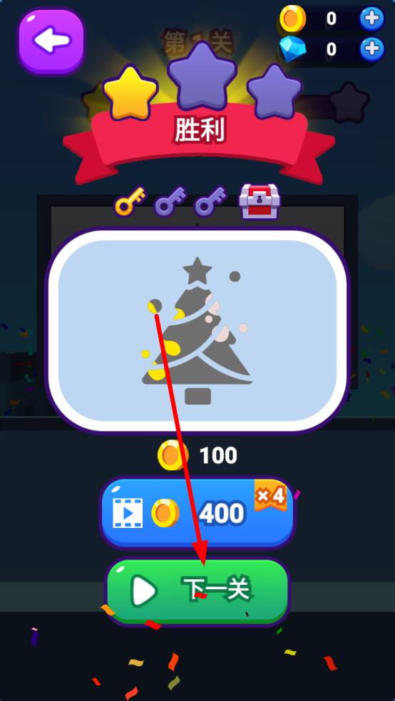 3、成功淘汰所有对手或达成胜利条件,界面显示“胜利”,点击“下一关”解锁新关卡与角色,持续解锁更多内容,畅享爆笑竞技的持久乐趣。