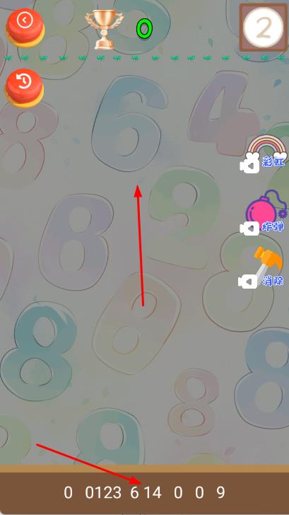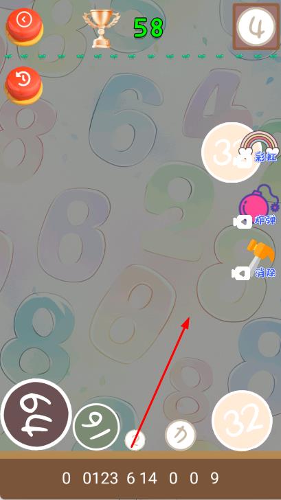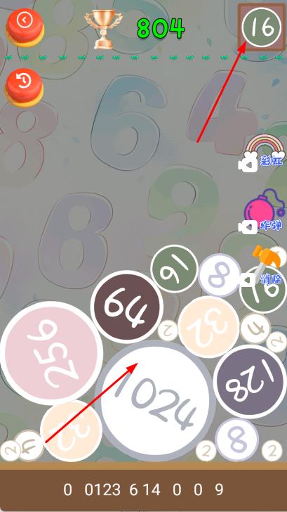 3、合理利用“彩虹”“炸弹”“消除”等道具,助力数字合成,提升得分。