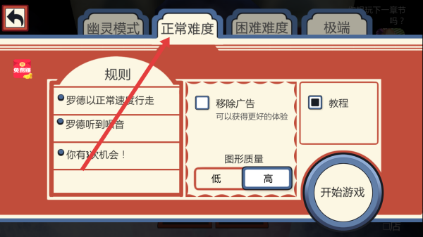 2、在难度界面选好后,玩家可以通过确认规则与设置图形质量等,点击开始游戏进入场景。