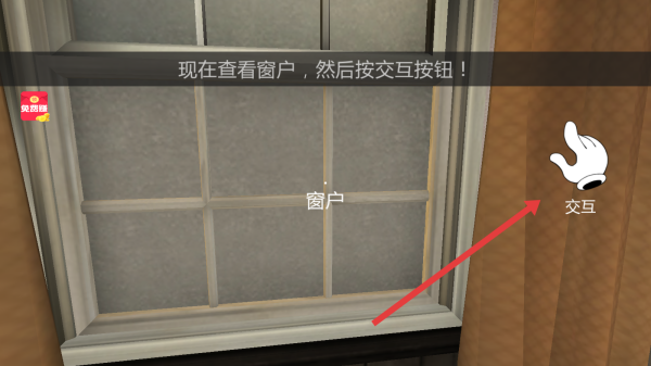3、开始游玩后,在游戏中按提示查看窗户,点击交互按钮,完成后续流程,推进恐怖冰淇淋剧情关卡。
