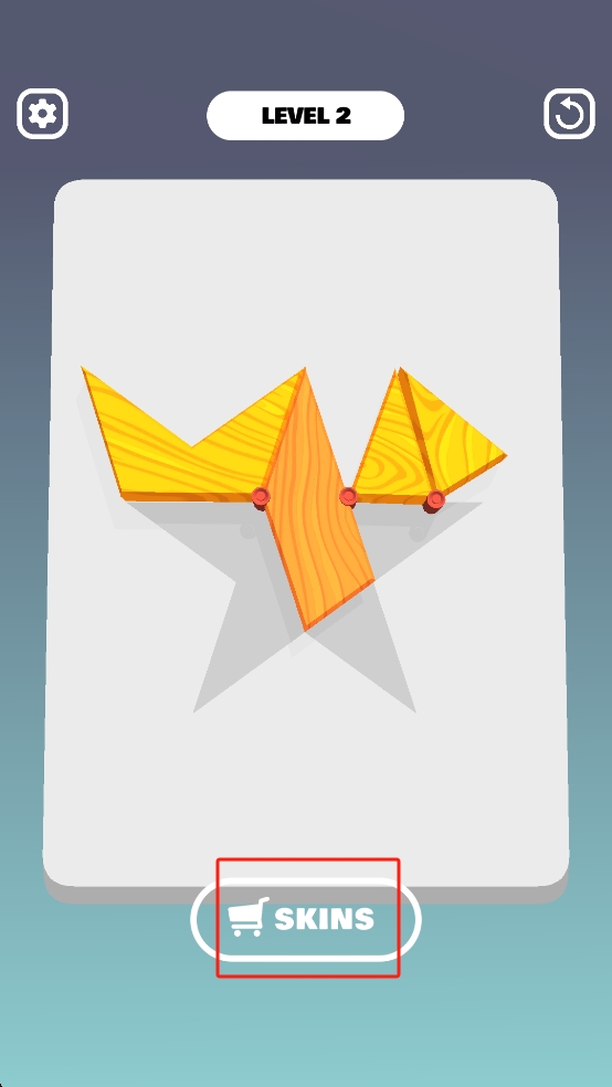 1、首先需要观察星形轮廓来规划等下怎么拼,点击下方SKINS按钮可以换皮肤,不过部分皮肤需要后续解锁。