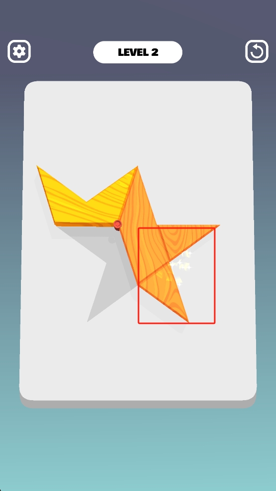 2、进入游戏后拖动黄色木质部件,利用红点旋转轴,调整角度,让部件边缘契合星形缺口,逐步进行拼接。