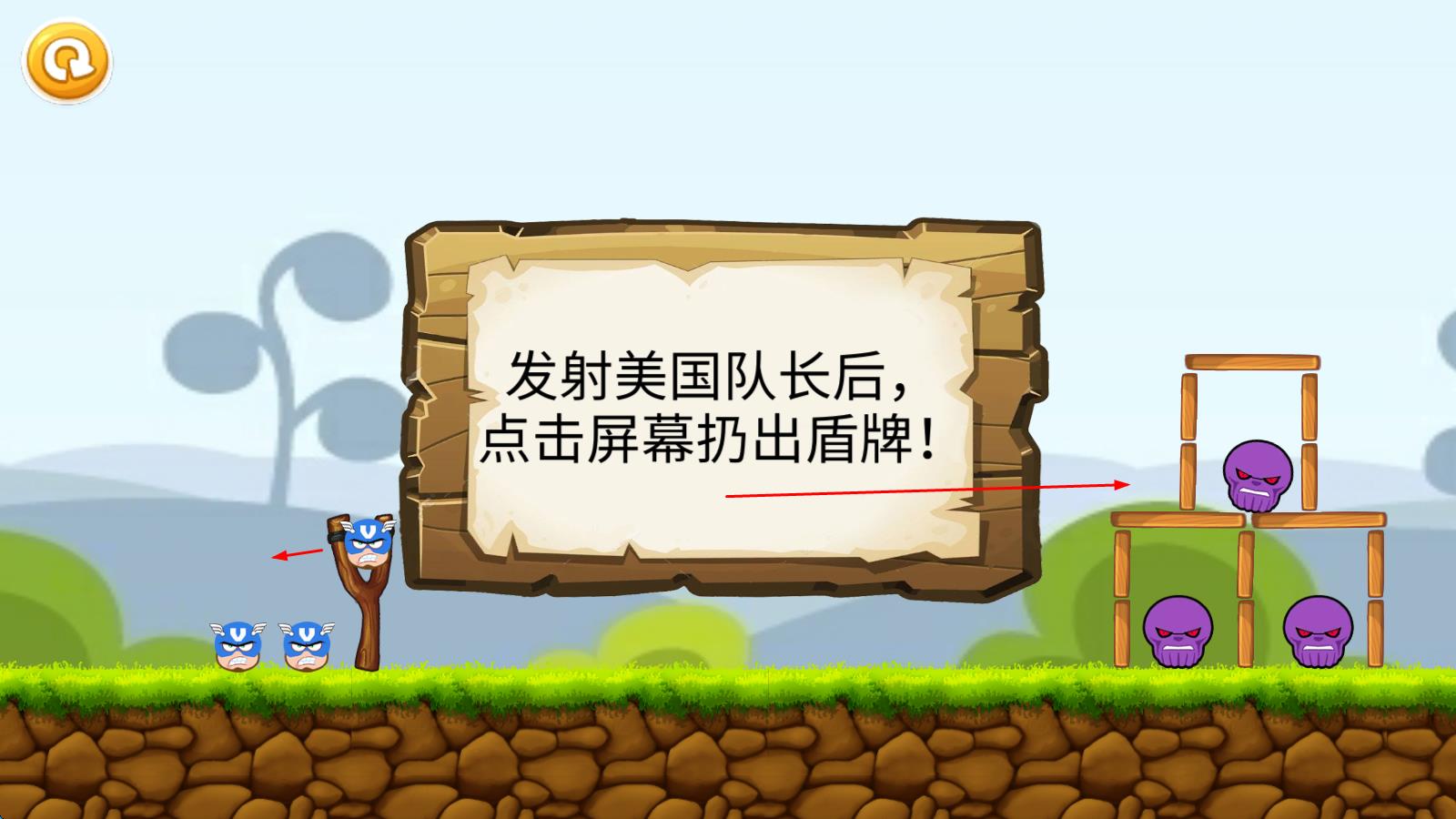 1、英雄弹射挑战:拉动弹弓将超级英雄弹射出去,瞄准并砸中紫色灭霸,利用物理原理让攻击效果最大化,消灭所有敌人通关。