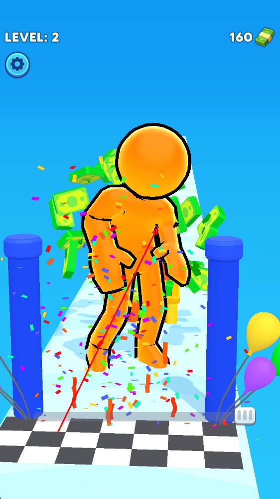 1、比例调整核心玩法:通过轻触屏幕调整角色大小比例,使其适应关卡中的障碍物,以合适形态奔跑穿越,这一独特机制贯穿所有关卡挑战。