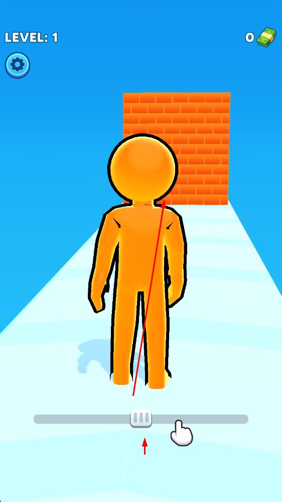1、进入游戏后,面对设有障碍物的关卡场景,轻触屏幕调整角色比例大小,让角色以合适形态开始奔跑,尝试穿过第一个障碍开启闯关。