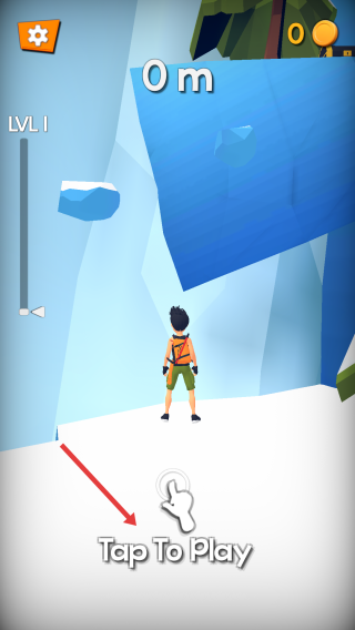 1、点击Tap To Play开始游戏,角色在冰壁场景中开启攀爬挑战。