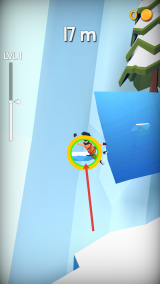 3、攀爬时收集金币,避开脱落冰块,抵达更高高度,完成LVL1等关卡,挑战更复杂地形。