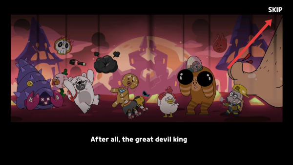 2、剧情中遇多样怪物,若想快速进入游戏,点击SKIP跳过剧情,直接开启战斗等核心玩法体验。