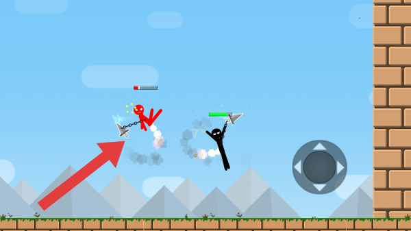 2、图片呈现两位玩家,红色是敌方敌人,需要移动火柴人将其血量减少,展现战斗对决场景。