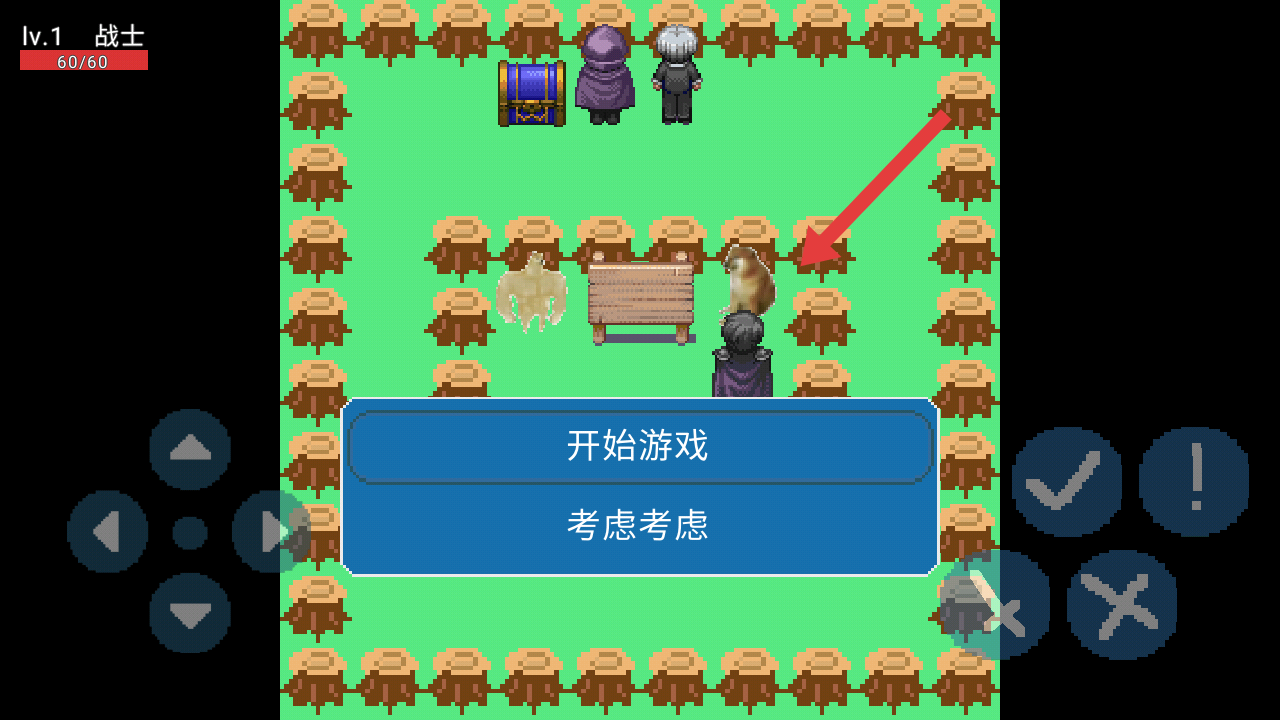 2、点击狗子触发对话后,可以选择弹出框中开始游戏的选项,开启冒险的关卡,进入实际战斗环节。