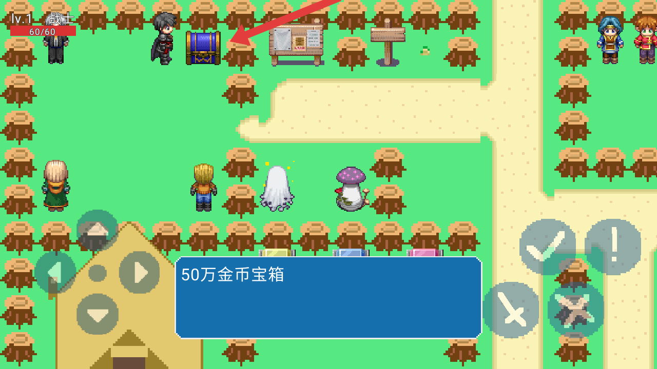 3、进入关卡的场地后,需要仔细观察,在角色的旁边就有一个宝箱处,点击开启50万金币宝箱,获取大量金币资源。