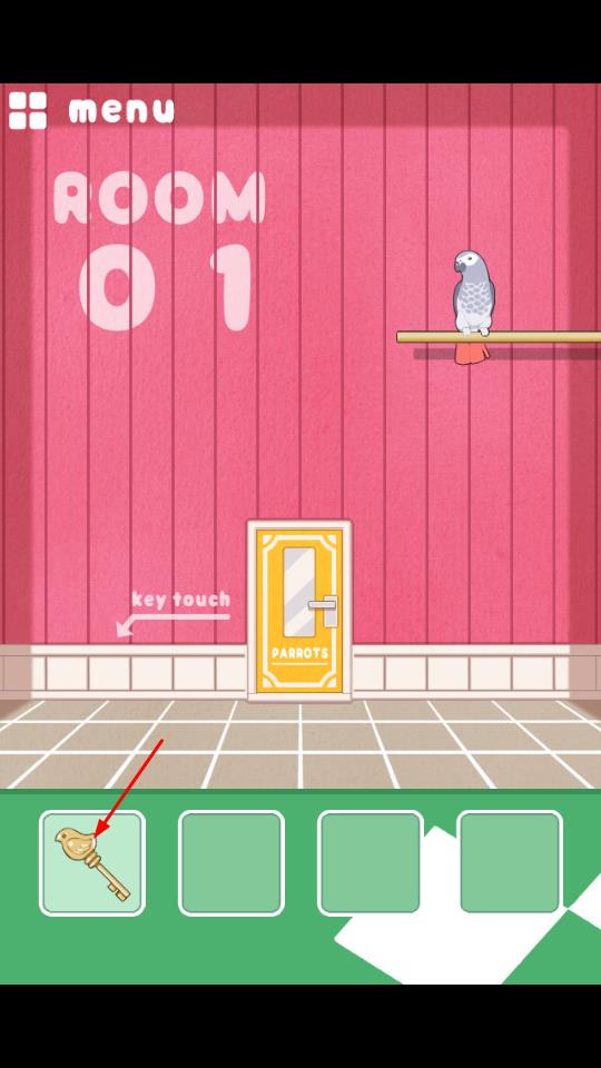2、在ROOM 01场景获取钥匙道具,根据key touch提示,选择对应区域使用钥匙。