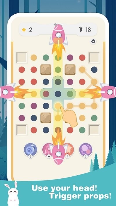 1、观察界面中不同颜色球球的分布,尝试用线条将同色球球串联,完成首次消除。