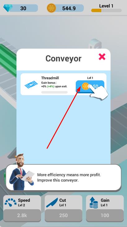 2、利用刀具切割传送带上的物品,使其通过传送带,完成加工流程,获取金币。