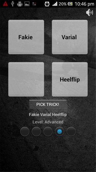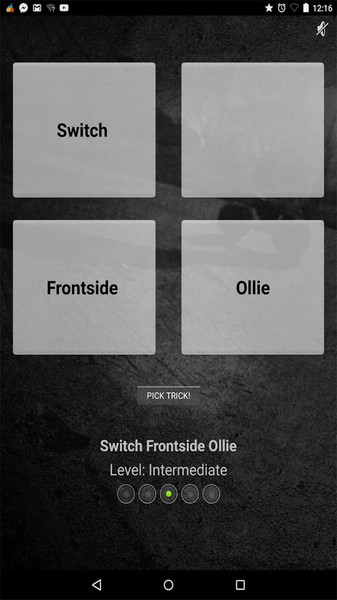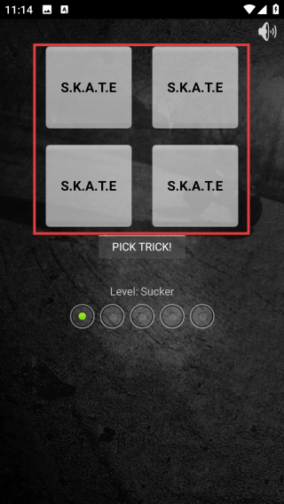 1、初始界面点击四个S.K.A.T.E选项,进入特技选择页,随等级Sucker、Pro、Advanced解锁180、Kickflip等滑板动作。