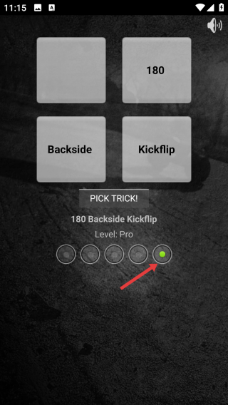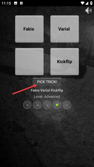 2、根据下方进度点推进,点击PICK TRICK选定特技,在游戏中执行对应动作,完成挑战以提升等级。