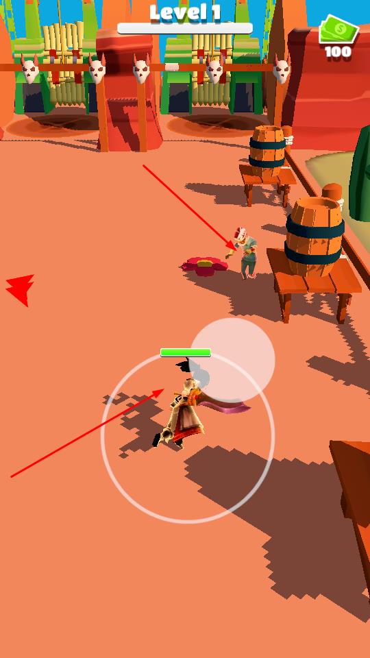 2、玩家在场景中朝着敌人方向移动,靠近后自动触发战斗,利用武器攻击,应对不同敌人挑战。