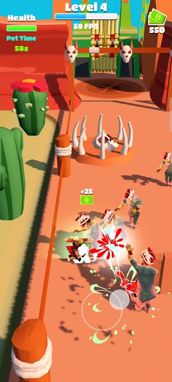 2、挥剑直击危险僵尸:挥动利剑在僵尸群中穿梭砍杀,周遭的僵尸暗藏致命威胁,每一次精准出击都是对勇气的考验,让战斗充满原始的刺激与爽感。
