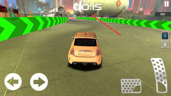 2、训练场景中,利用左右箭头控方向,上方显示倒计时00:15,沿绿色标识赛道行驶,熟悉操作。