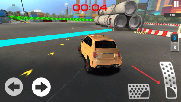 3、接近终点时,点击右侧油门踏板加速冲线,关注剩余倒计时00:04,完成训练提升驾驶技巧。