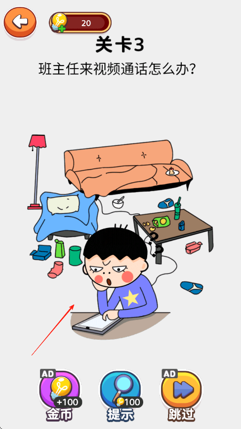 2、这一关,我们只需要将主人公背后的乱东西拖动到屏幕外即可,这样保持一个干净环境即可游戏通关。