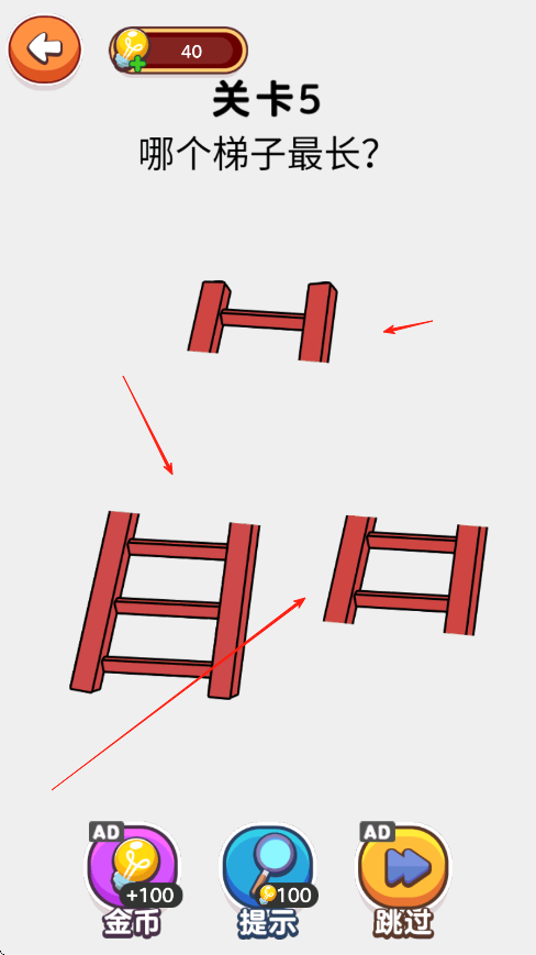 3、这一个关卡,我们需要将三个梯子拼接在一起,像拼图一样,拼起来的梯子是最长的,即可通关。