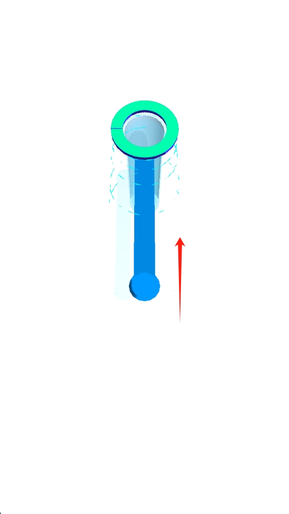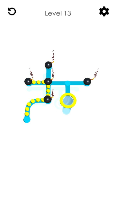 2、游戏关卡,需操控蓝色小球大理石 通过管道迷宫,红色箭头指示移动方向,向上滑动移动。