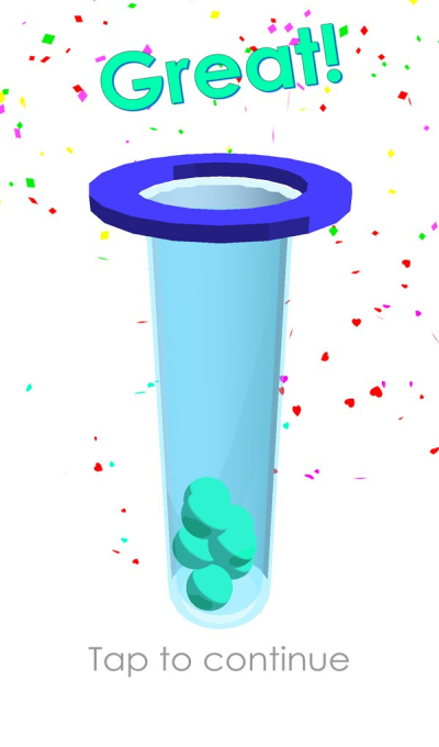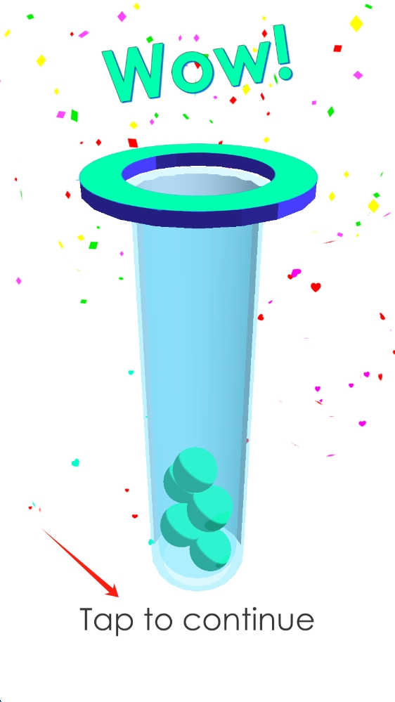 3、关卡结算,显示Wow!哇哦,有Taptocontinue点击继续 按钮,点击继续游戏。