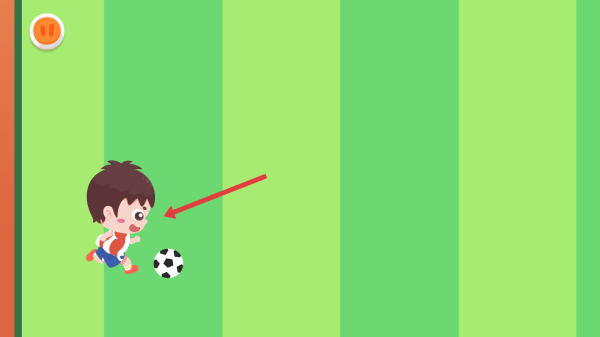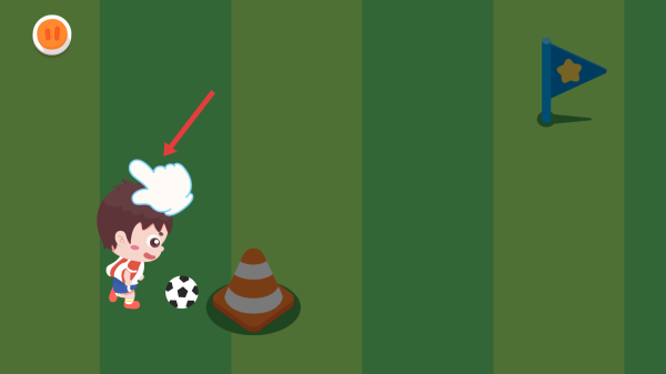 2、游戏中引导小男孩带球移动,依据提示绕开锥形桶等障碍,练习控球技巧。