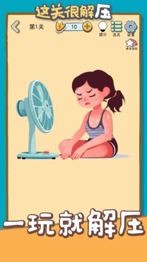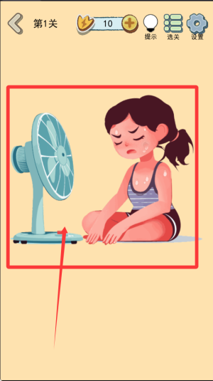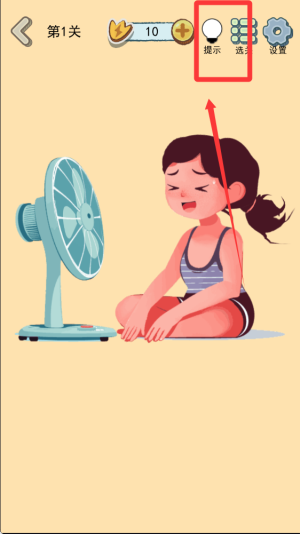 1、玩家从首关开始游戏,通过点击电风扇开关帮助角色降温,体验基础解谜操作,快速掌握游戏机制。
