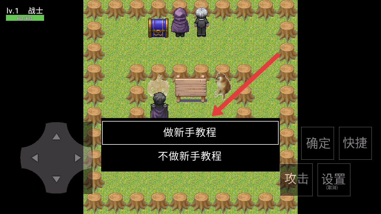 1、进入升级之路3的游戏后,与左上角的狗子进行对话,选择做新手教程,跟随引导熟悉基本操作。