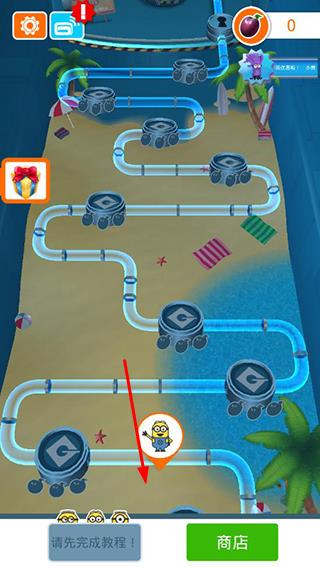 2、跑酷途中,面对低矮障碍按住屏幕向下滑动让小黄人钻过,在侧面视图时向上滑动实现跳跃,同时收集香蕉,留意解锁新关卡的条件。